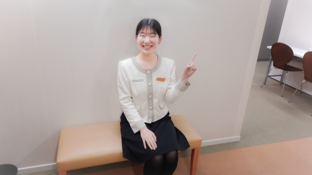お客様をレッスン室に案内するKさん